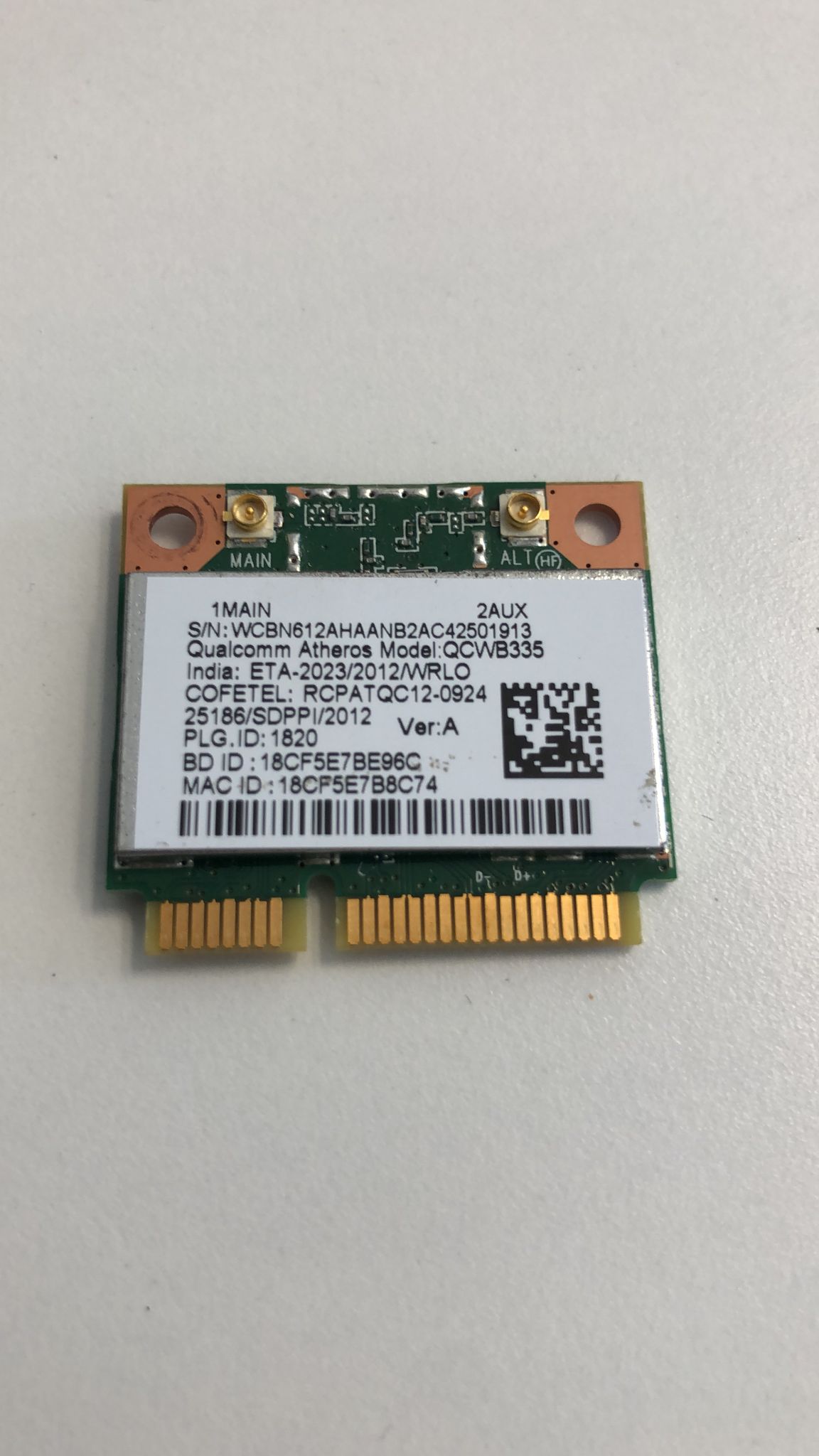 Carte wifi QCWB335 pour Packard bell Acer ENTF71BM-C4XZ Pièces détachées Pc portable 100% testé fonctionnel
