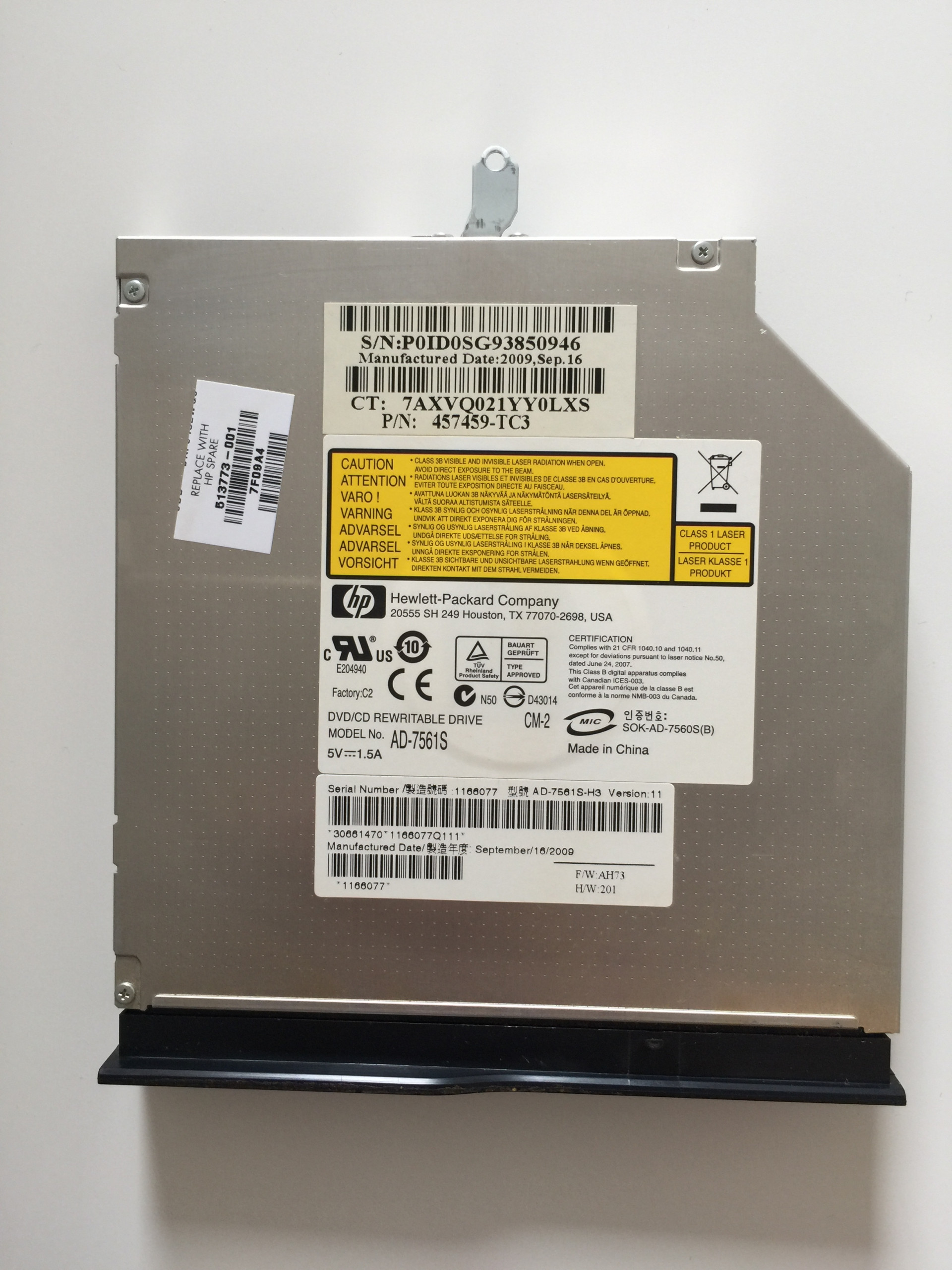 Lecteur graveur dvd AD-7594S 513773-001 457459-TC3 pour HP CQ71-310SF Pièces détachées Pc portable 100% testé fonctionnel